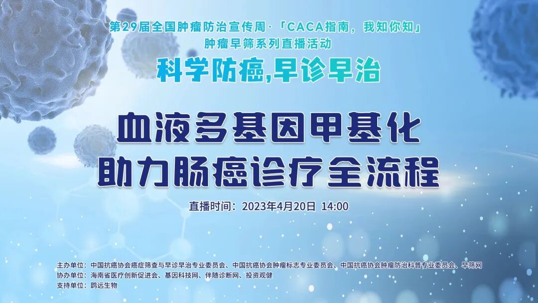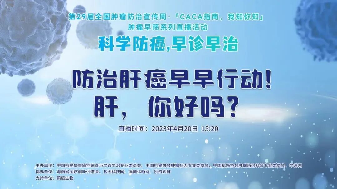4月20日,由中国抗癌协会癌症筛查与早诊早治专业委员会、中国抗癌协会肿瘤标志专业委员会、中国抗癌协会肿瘤防治科普专业委员会、早筛网联合发起,鹍远生物提供支持的
