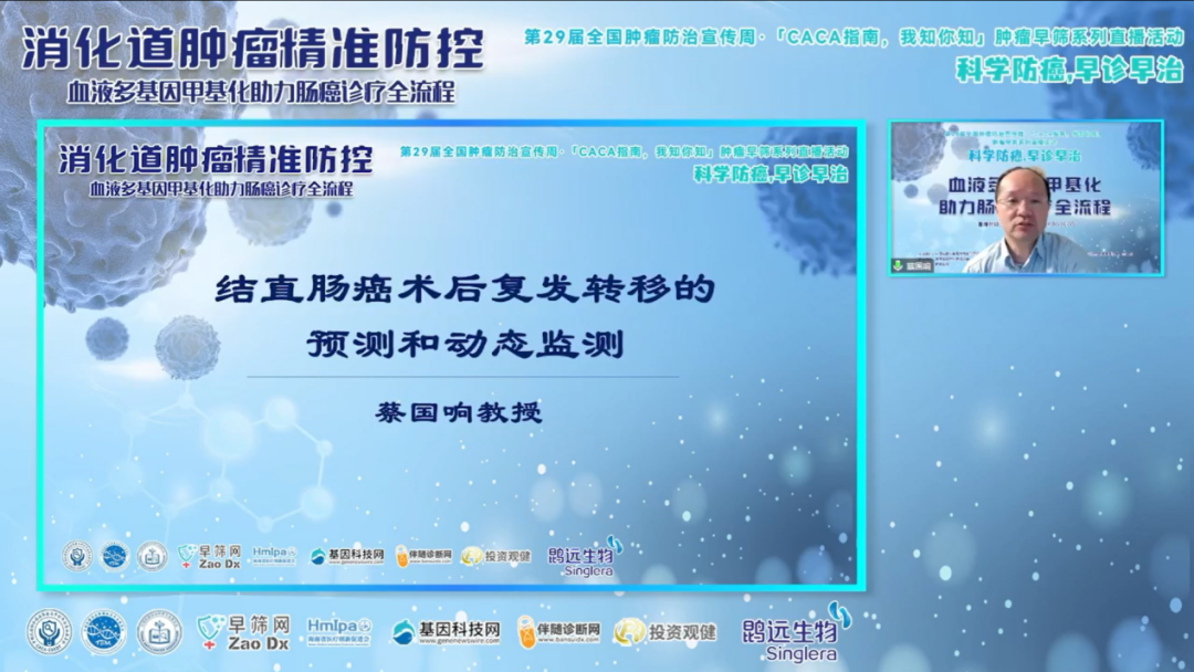复旦大学附属肿瘤医院蔡国响教授在《结直肠癌术后复发转移的预测和动态监测》主题演讲中表示,