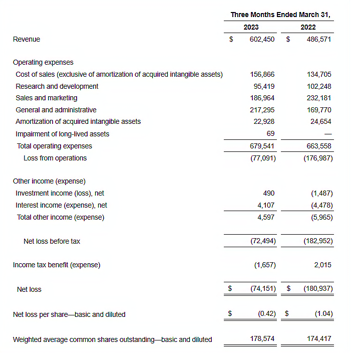 若包括所收购无形资产摊销在内,毛利率为 71%,若不包括所收购无形资产摊销的非 GAAP 毛利率为 74%;