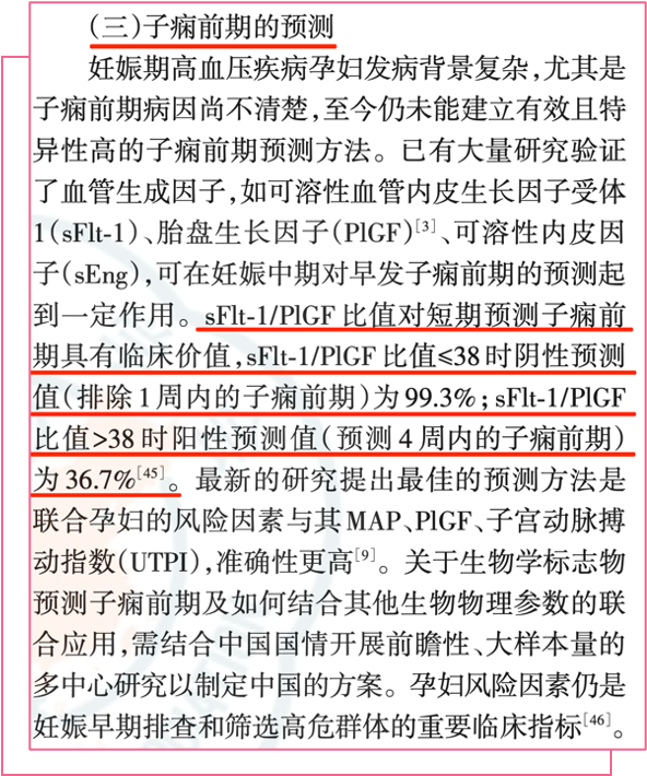 2)sFlt-1/PlGF 比值在辅助诊断子痫前期以及提示病情严重程度等方面同样具有重要临床价值: